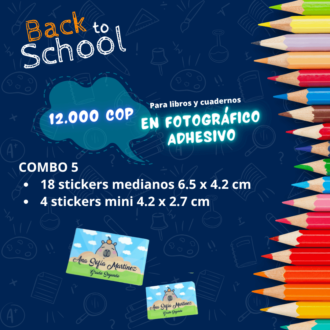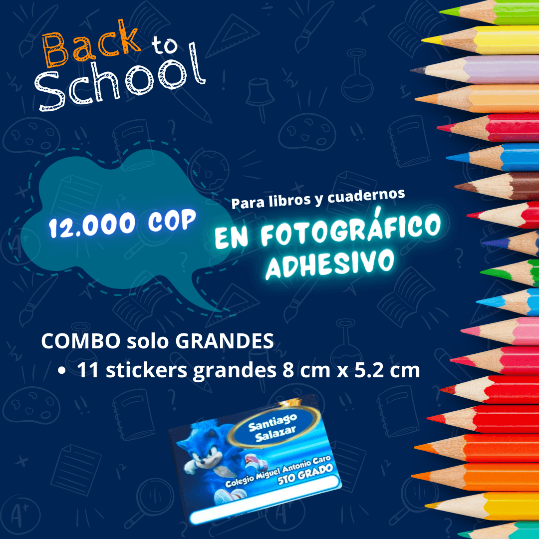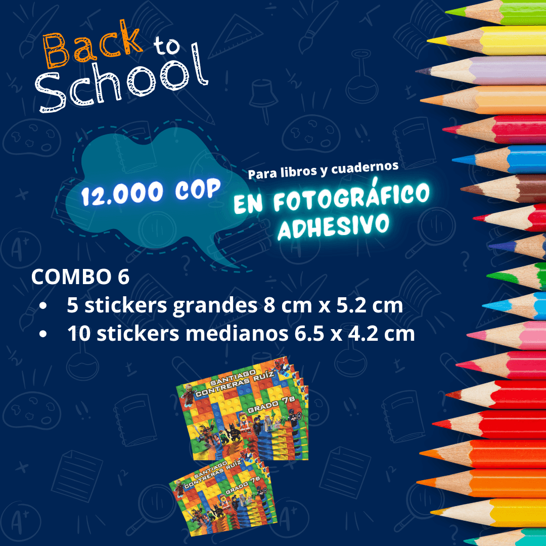 KITS de stickers escolares personalizados que se adaptan a tus necesidades, con diversos tamaños, materiales y cantidades, según lo que quieras y lo mejor en el motivo que gustes, solo tienes que indicarnos al whatsapp y diseñamos para ti.