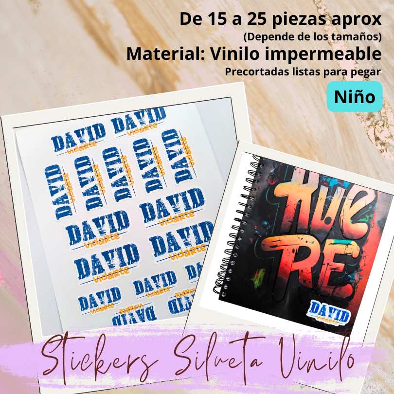 Los stickers escolares silueta son etiquetas con corte a contorno de tu nombre, iniciales o personajes favoritos. En Paper Design los fabricamos en vinilo adhesivo de alta calidad o en UVDTF de alta resistencia con colores vibrantes y excelente adherencia para cuadernos, carpetas, lápices, loncheras y más. Personalizamos tipografías, colores y motivos para que cada set combine con tus útiles.